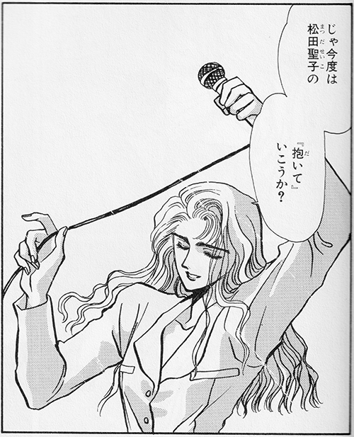 Not actually sung, but the OL ghost suggests she'd like to sing it next. A dramatic and emotional slice of idol pop from the Eternal Idol herself, Matsuda Seiko (who also performs "Who's That Boy", found on Single White). Released in 1987 as a promo-only single from her fifteenth studio album, 1988's Citron. Despite never being released as an official single, it's one of Matsuda's more popular songs, especially karaoke-wise. It's rather interesting that the OL picks a Matsuda song directly after a Nakamori Akina track -- the pair were notorious rivals in the 80s, supposedly even in love.